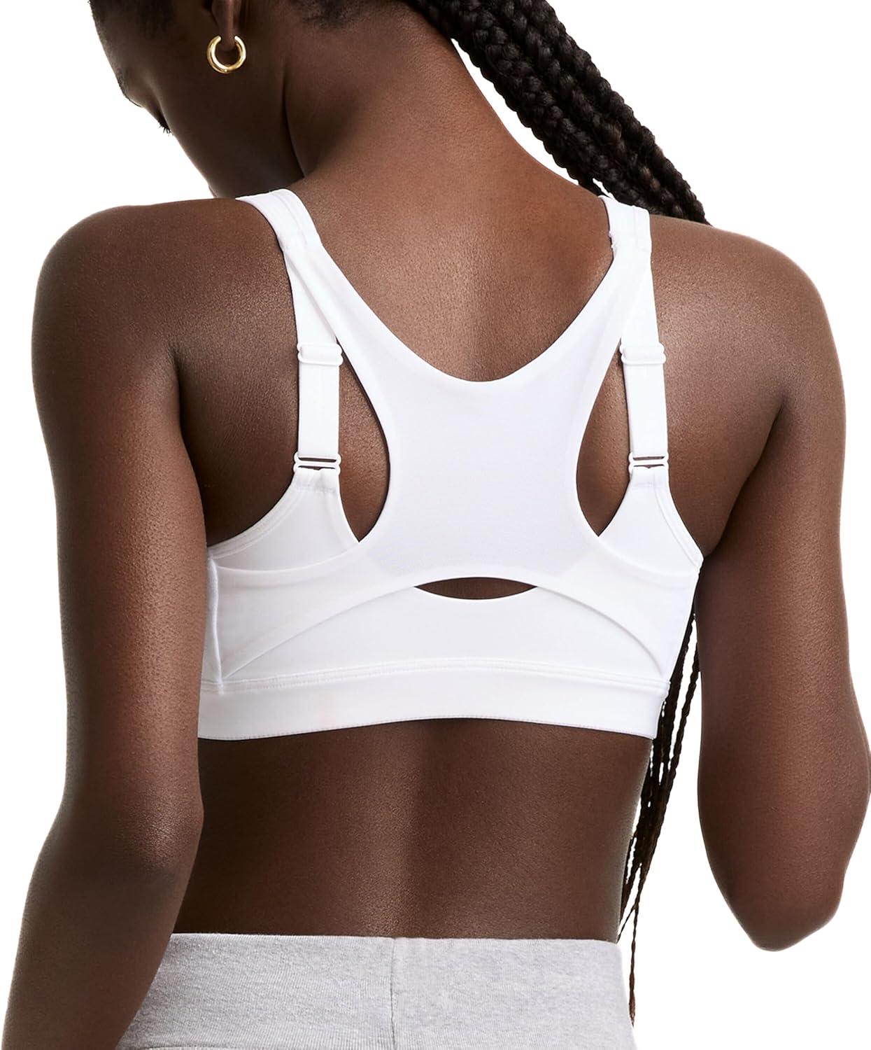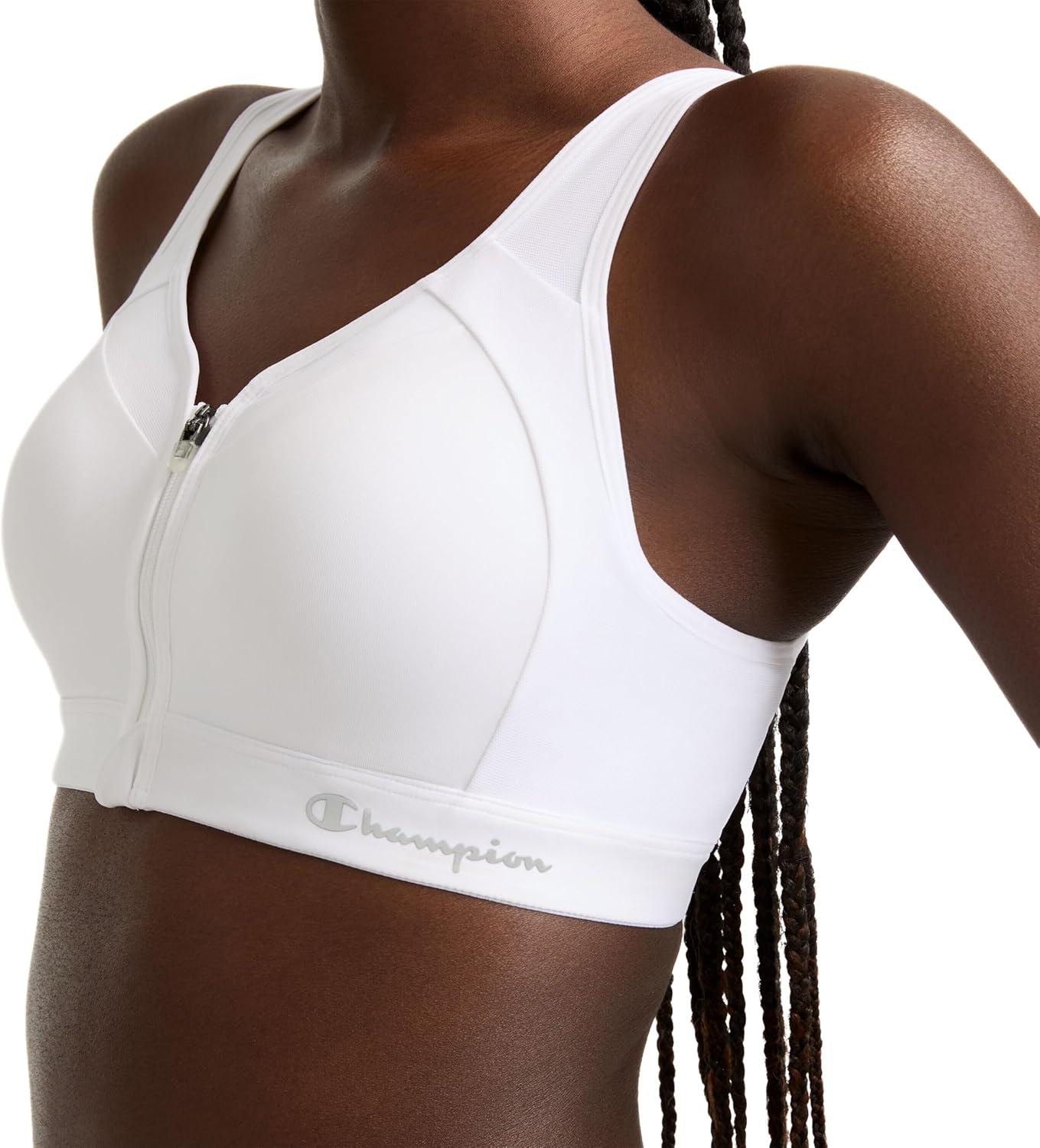 Champion Women's Sports Bra, Motion Control Zip High-impact Sports Bra, Wirefree Bra for Women(White)