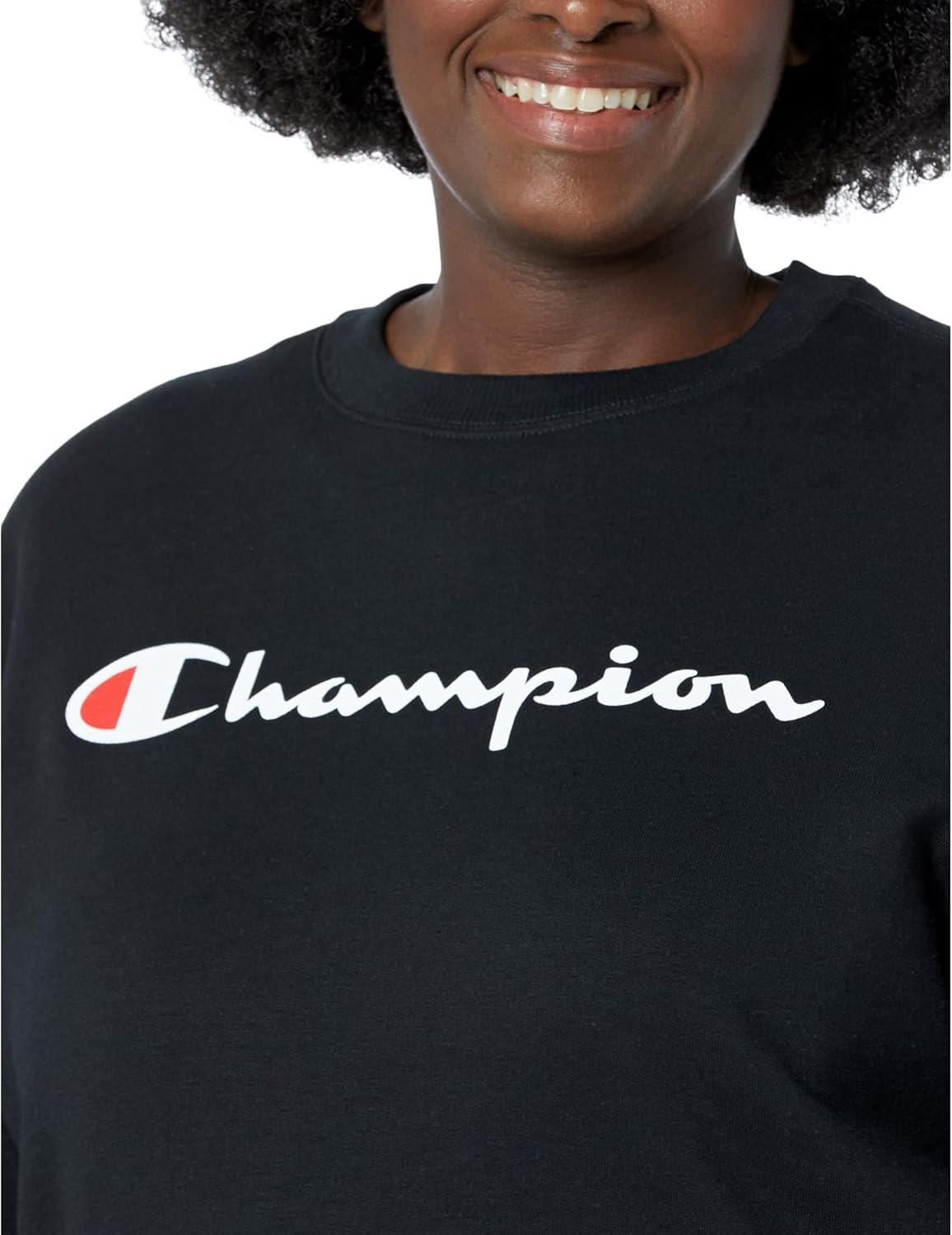 Champion Women's Sweatshirt, Fleece, Crewneck Sweatshirt, Warm Sweatshirt for Women (Plus Size Available)(Black Script (Retired))