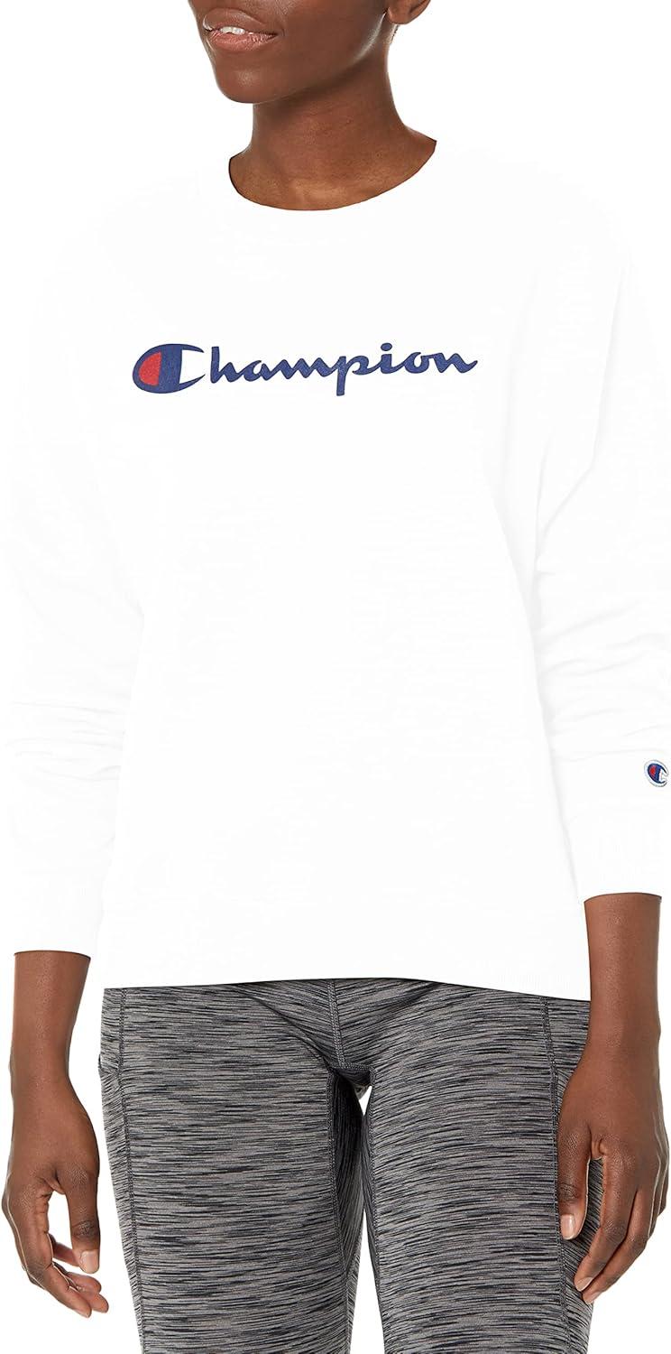 Champion Women's Sweatshirt, Fleece, Crewneck Sweatshirt, Warm Sweatshirt for Women (Plus Size Available)(White Script)