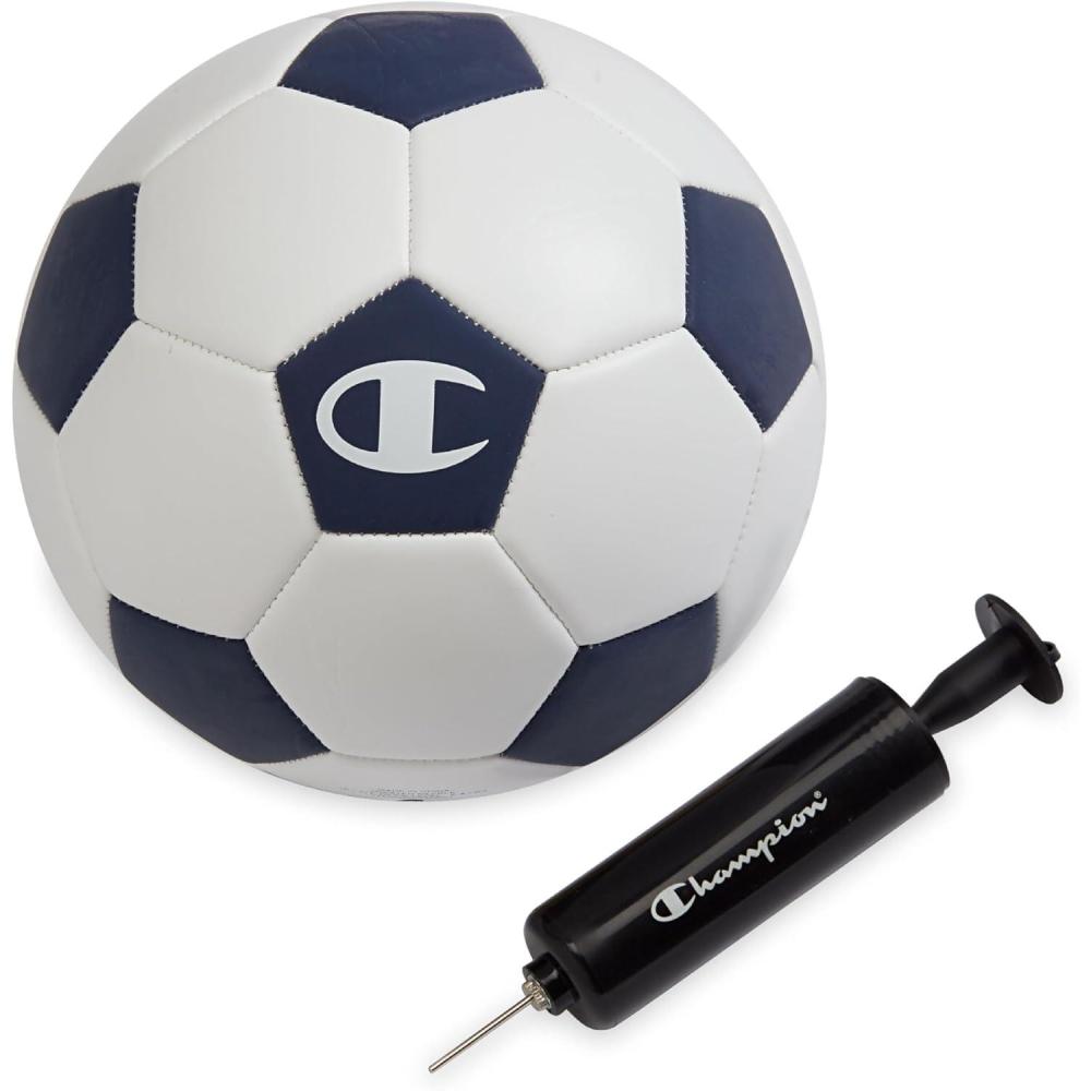 Champion Youth & Adult Soccer Ball - Paneled Design, Enhanced Control, Durable Cover & Butyl Bladder, for Indoor & Outdoor Training, Sizes 3, 4, 5, Includes 6" Pump(White/Medieval Blue)